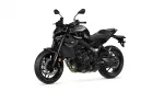 Para un comportamiento ultrapreciso, la MT-09 equipa un compacto chasis de aluminio, unas suspensiones regulables y unas llantas superligeras. El doble disco delantero de 298 mm con bomba de freno radial garantiza un máximo control con una simple presión de los dedos en la maneta. El estilo radical de nueva generación y la pureza de diseño de su parte ciclo a la vista confirman a la MT-09 como una Hyper Naked pura y dura.